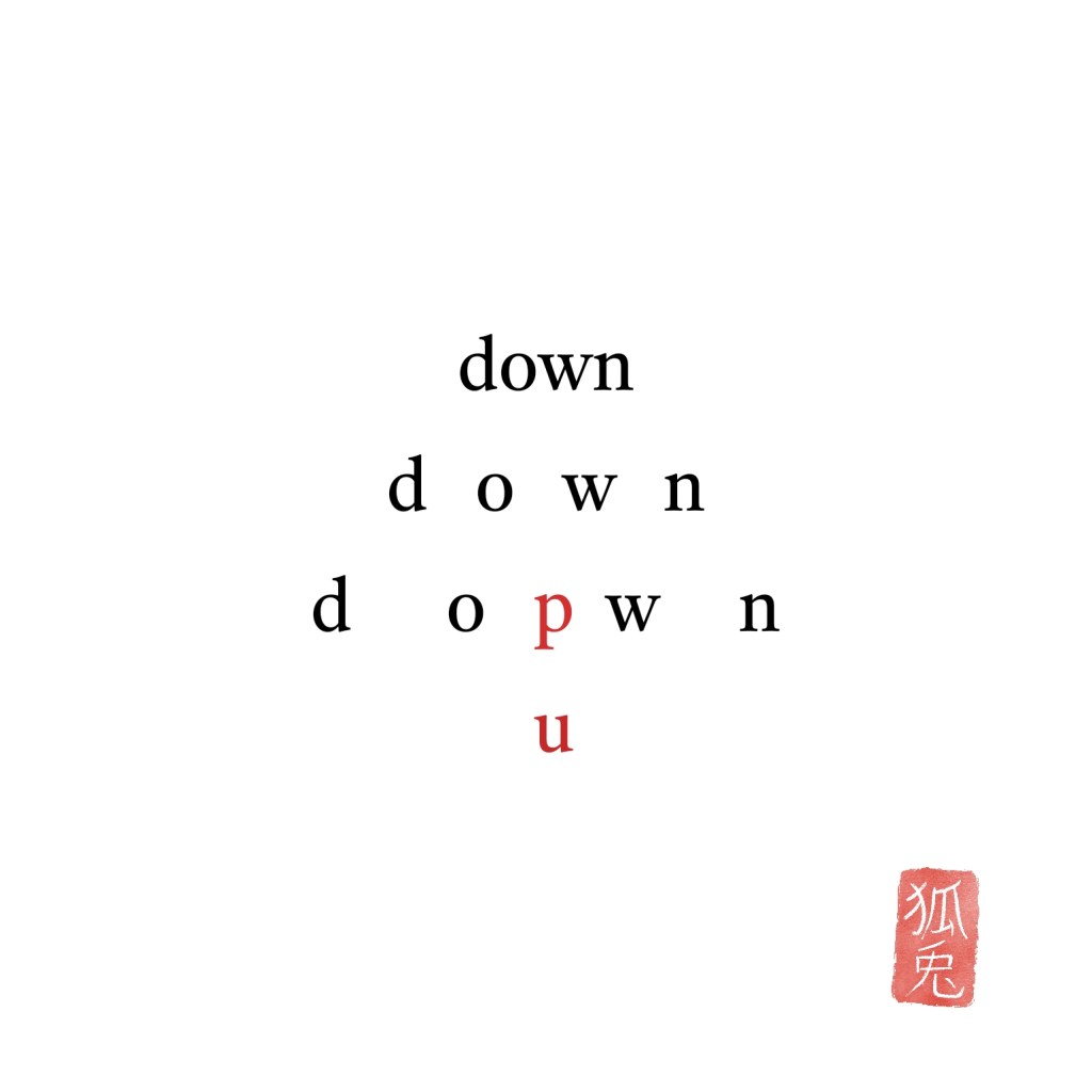 The second one: while falling things seem to scatter which allows to move upwards in between, at some point moving up gets more and more difficult, right? (Do you see the arrow?) The concrete poem plays with the reality of living, how much effort we need to take to move upwards, it gets harder and harder, but we can’t help but try.